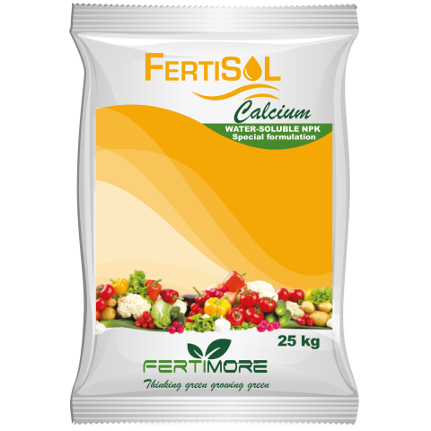FERTISOL CALCIUM formulas are produced from pure crystals, highly soluble in water and free from sodium, chlorides and carbonates, hence suitable for all irrigation systems. The very low salt content reduces sedimentation, preventing nozzle clogging and tubes blockage. The formulas have a high level of calcium and magnesium added to nitrogen, phosphorus and potassium to strengthen cell tissues and simulate metabolic activities, providing at the same time the fundamental amount of nutrients required for a vigorous and healthy growth of the plant. The presence of SO3 is essential for an efficient uptake and assimilation of nutrients, for the role it plays in the demobilisation of the mineral elements in the soil. The EDTA chelated micro-nutrients add to the formulas a complete nutritional provision for growth enhancement under high soil pH conditions and for the stimulation of biochemical interactions and activation between different nutrients.